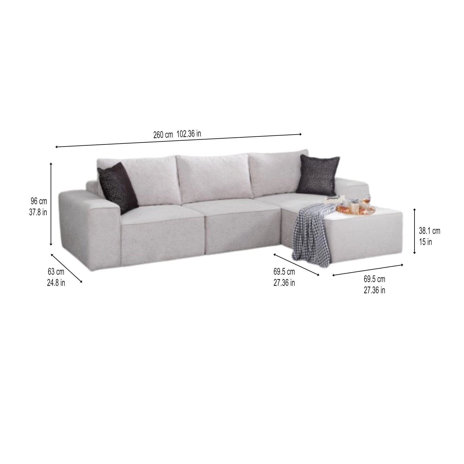 Longueur totale : 260 cm / 102,36 po