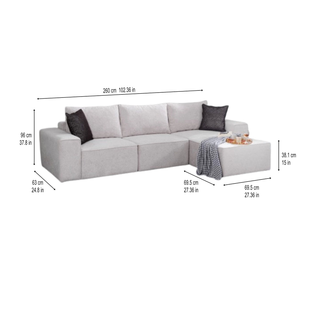 L’ensemble de canapé d’angle Moderna grace allie flexibilité modulaire et design européen raffiné. Construit avec une structure en bois massif durable, revêtu d’un tissu haut de gamme et équipé de coussins en mousse haute densité, il garantit un confort longue durée et une solidité remarquable. Son design spacieux et sa finition élégante en font un excellent choix pour les salons modernes, les hôtels, les halls de réception et les bureaux.